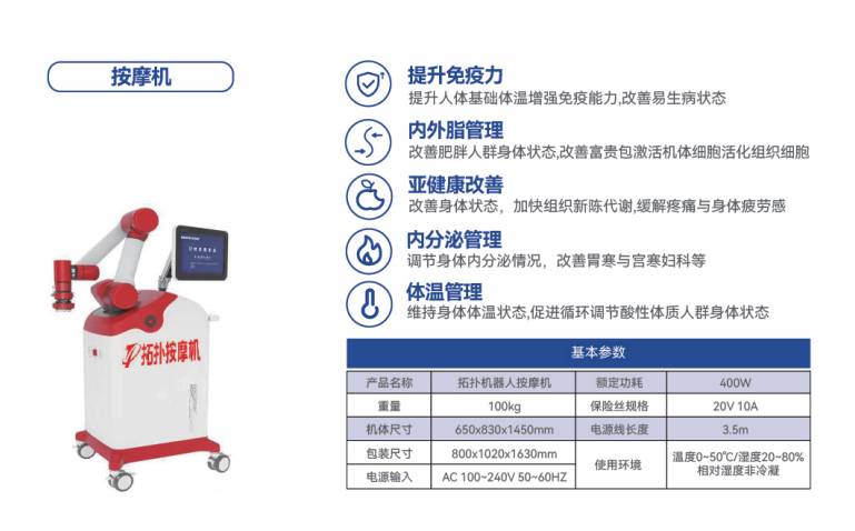 东莞铸铖智能科技有限公司-拓扑按摩机器人 上一页: 铸铖科技-拓扑咖啡机器人 下一页: 铸铖科技-冰淇淋机器人 郑重声明:本文版权归原作者所有,东莞市机器人产业协会(www.dgroboticsp.cn)转载文章仅为传播更多信息之目的,如作者信息标记有误,请第一时间联系我们修改或删除,多谢。